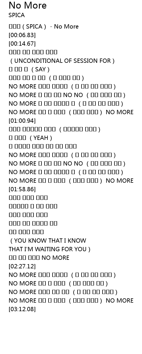 | [03:02.43] | NO MORE 이젠 다 끝났어 (우리는 끝났어) NO MORE |