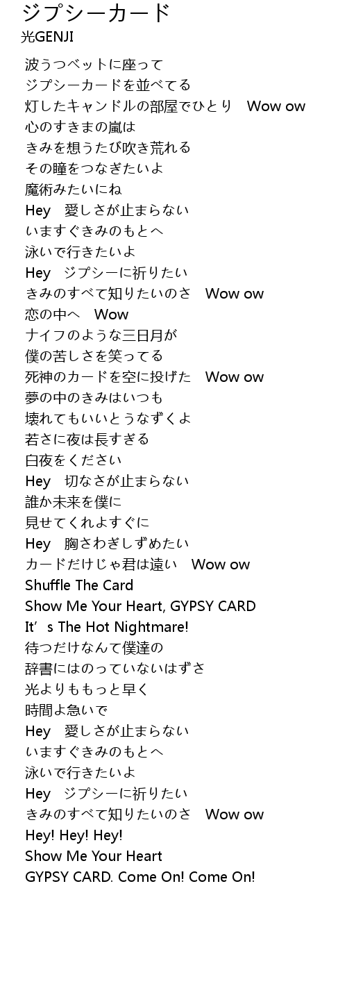 | [03:03.620] | Show Me Your Heart, GYPSY CARD |
