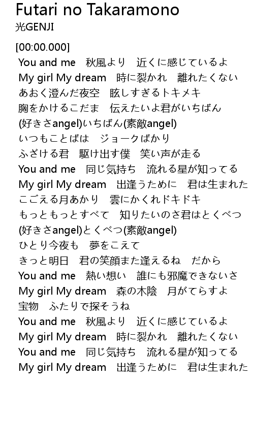 | [03:39.263] | My girl My dream 出逢うために 君は生まれた |