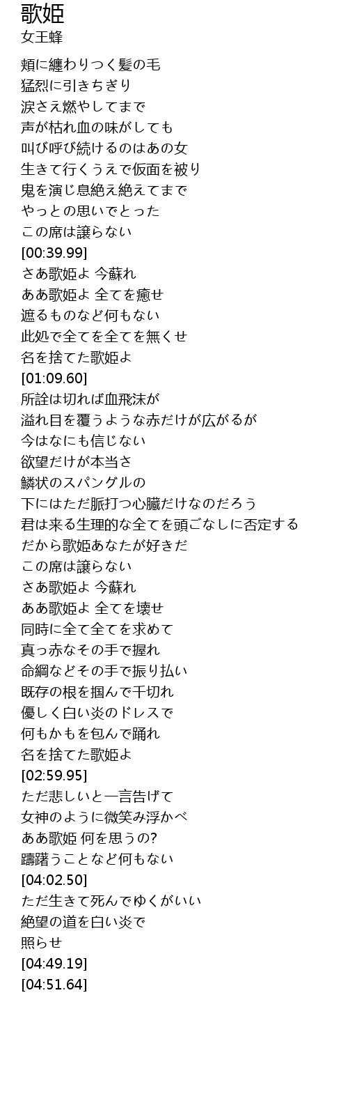 | [00:40.62] | さあ歌姫よ 今蘇れ |
