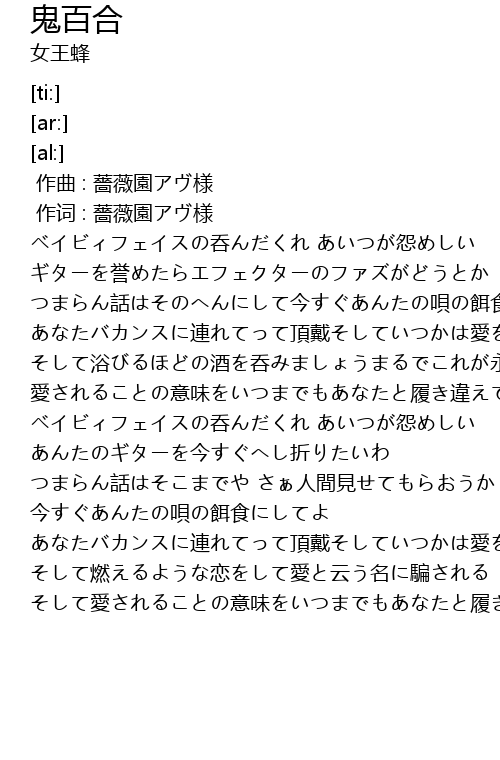| [00:01.00] | 作词 : 薔薇園アヴ様 |