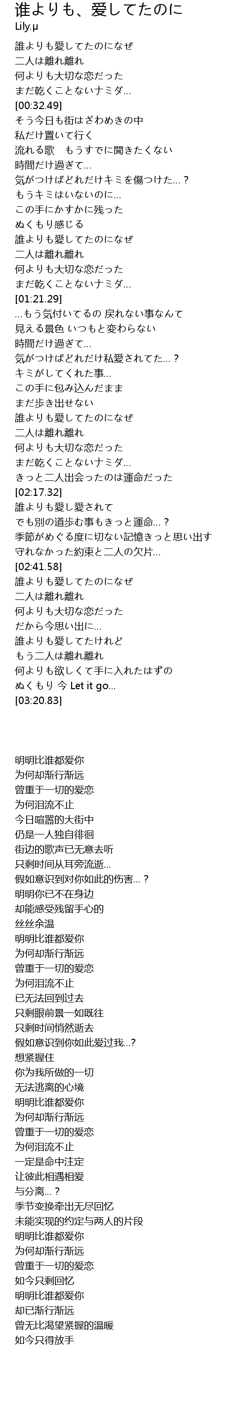 | [03:00.64] | 誰よりも愛してたけれど |
