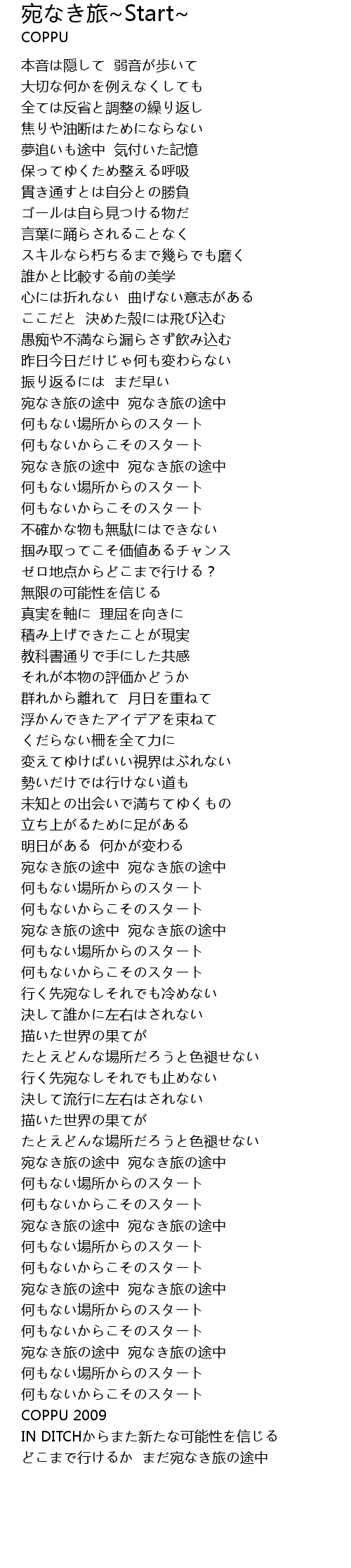 | [02:17.000] | 宛なき旅の途中 宛なき旅の途中 |