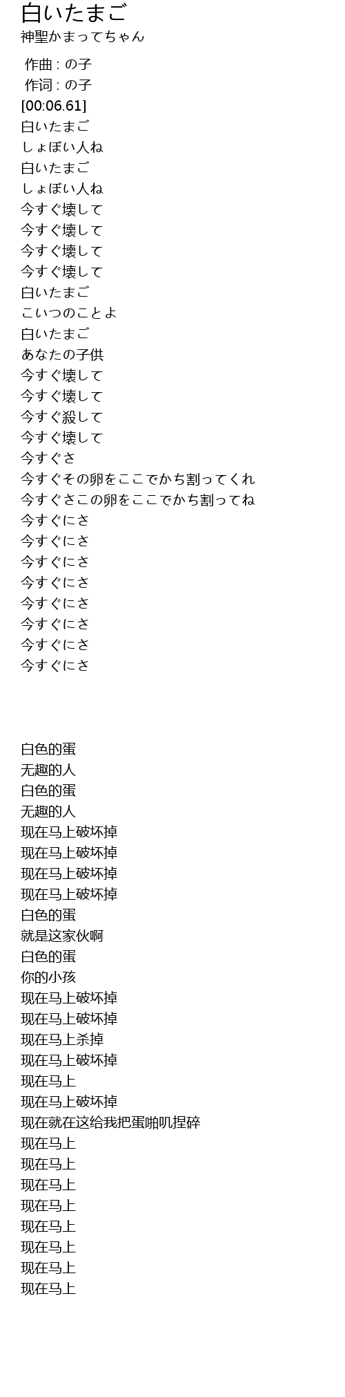 今すぐさこの卵をここでかち割ってね |