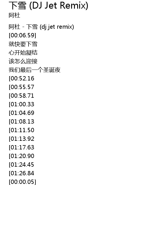 | [00:01.44] | 阿杜 - 下雪 (dj jet remix) |