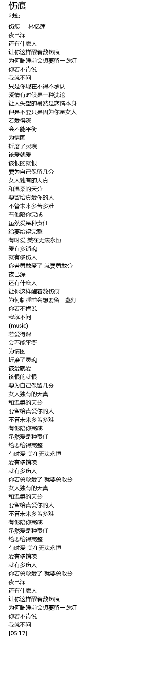 | [00:00] | 伤痕 林忆莲 |
