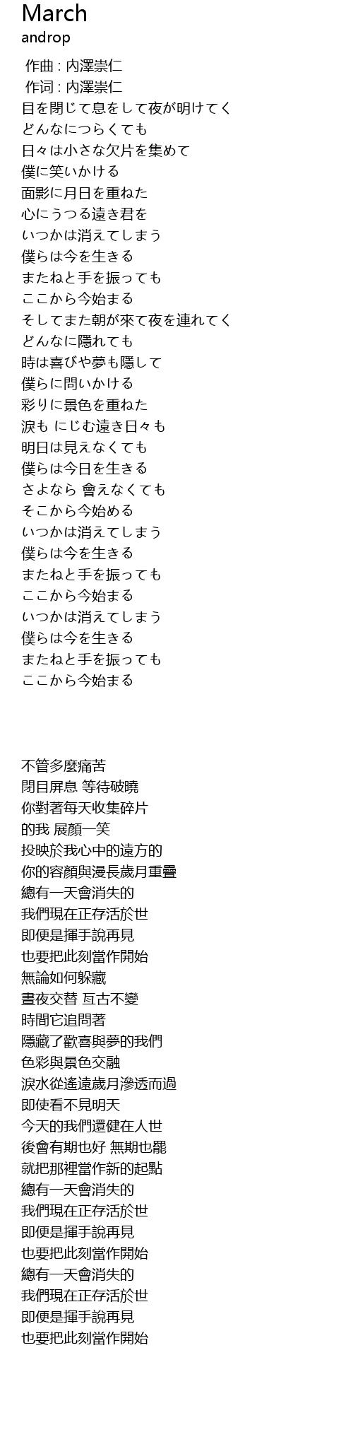 | [00:01.00] | 作词 : 內澤崇仁 |