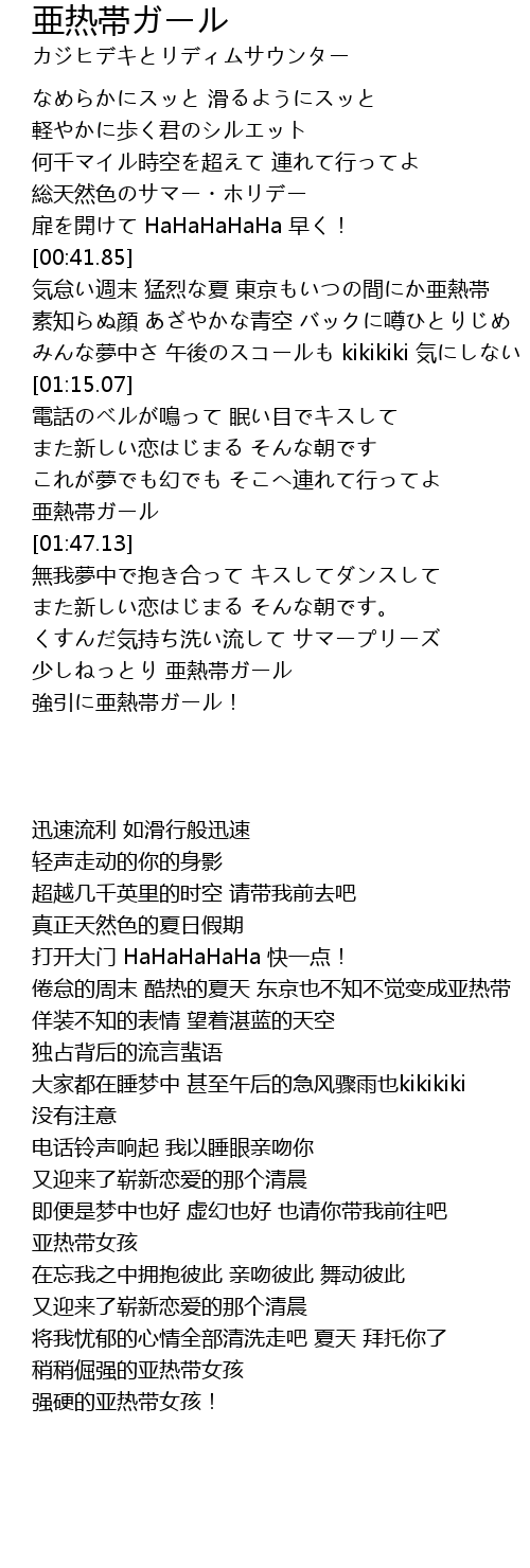 | [01:07.24] | みんな夢中さ 午後のスコールも kikikiki 気にしない |