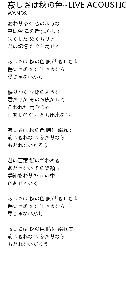 | Song | 寂しさは秋の色~LIVE ACOUSTIC Version~ |