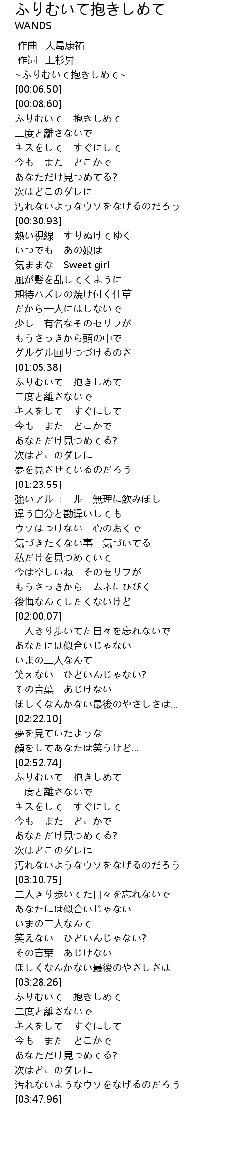 | [00:00.20] | ~ふりむいて抱きしめて~ |
