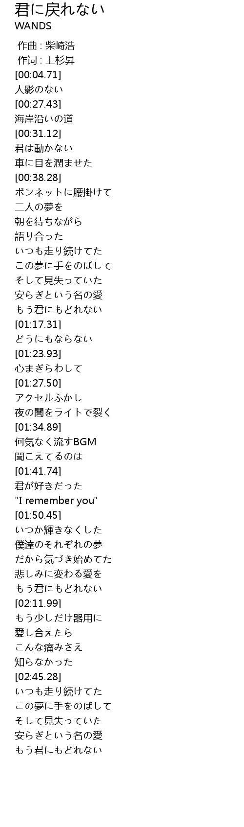 | [03:00.81] | もう君にもどれない |