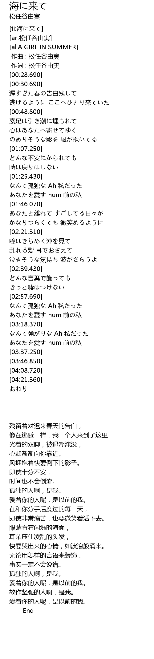 | [00:41.710] | 逃げるように ここへひとり来ていた |