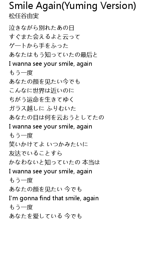 | Song | Smile Again(Yuming Version) |