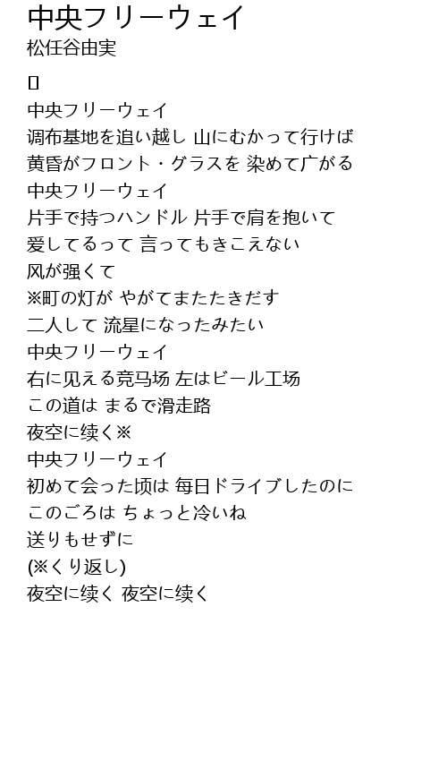 | Song | 中央フリーウェイ |