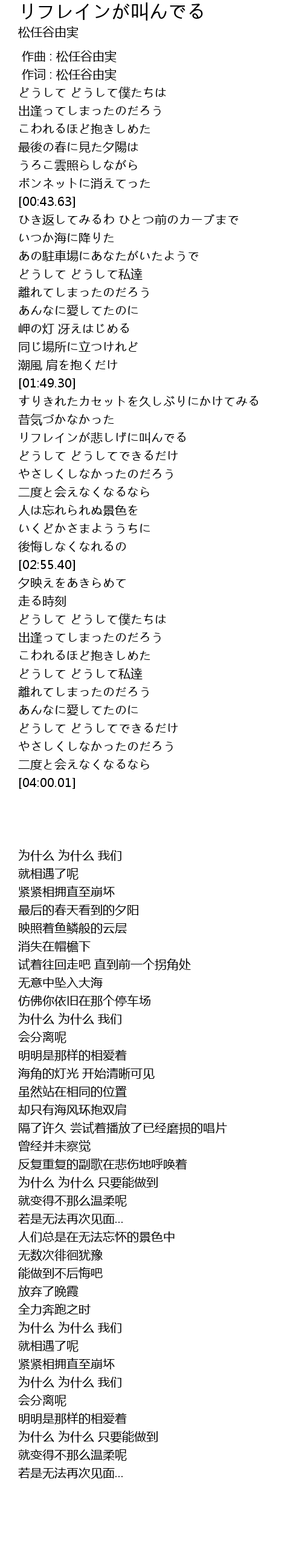| [00:00.00] | 作曲 : 松任谷由実 |
