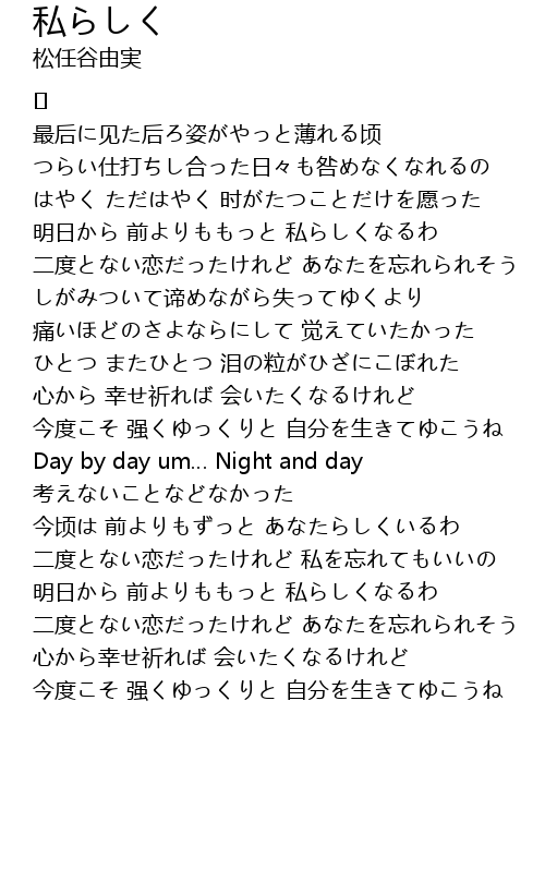 | 今顷は 前よりもずっと あなたらしくいるわ | |
