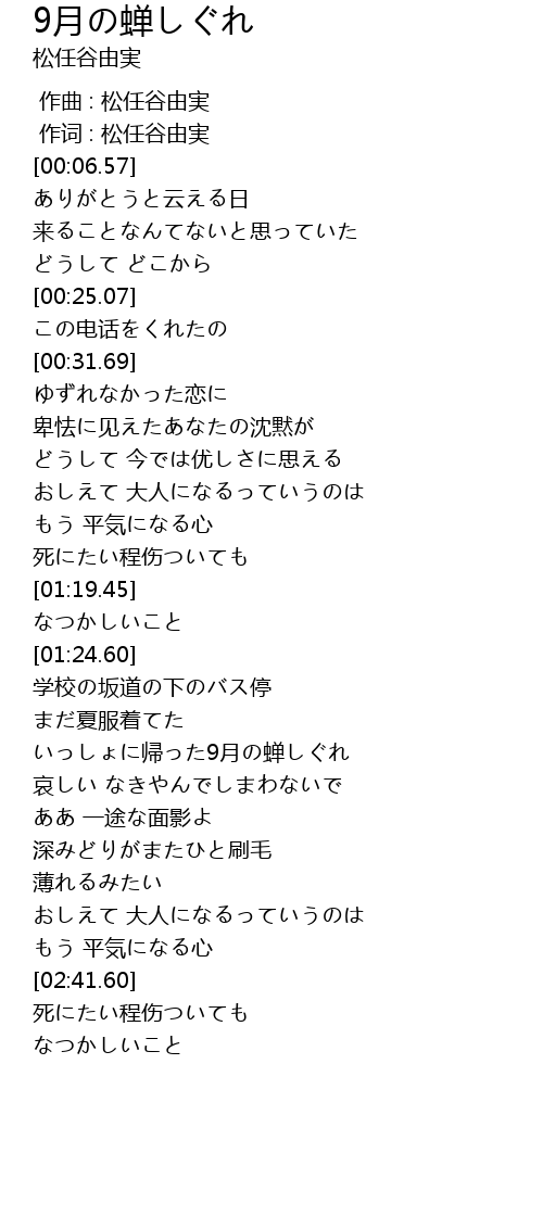 | [01:51.67] | いっしょに帰った9月の蝉しぐれ |