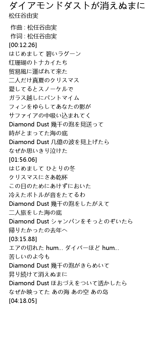 | [02:58.22] | Diamond Dust シャンパンをそっとのぞいたら |
