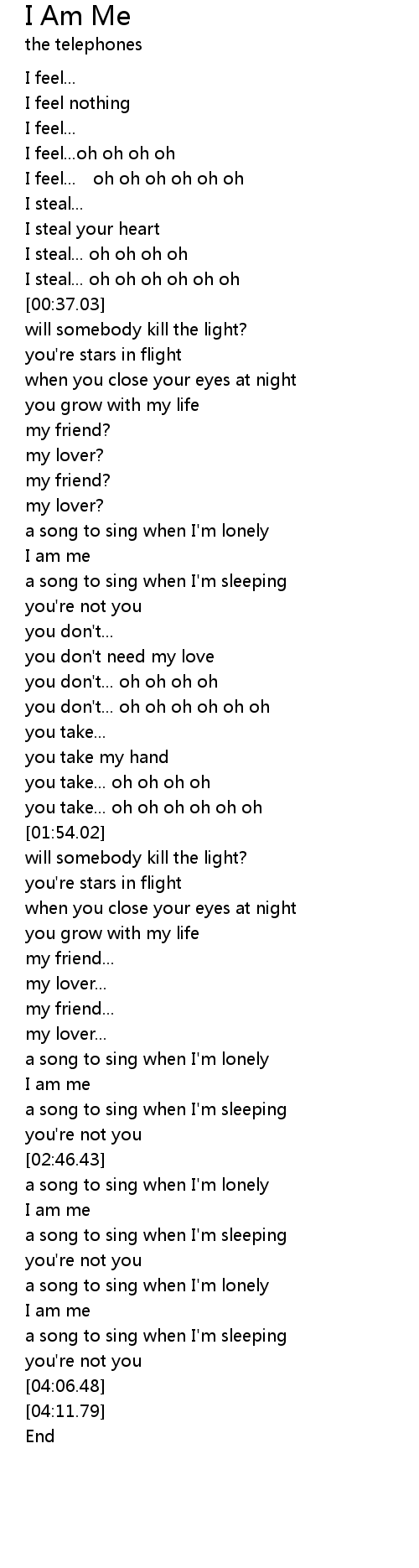 | [00:20.95] | I feel... oh oh oh oh oh oh |