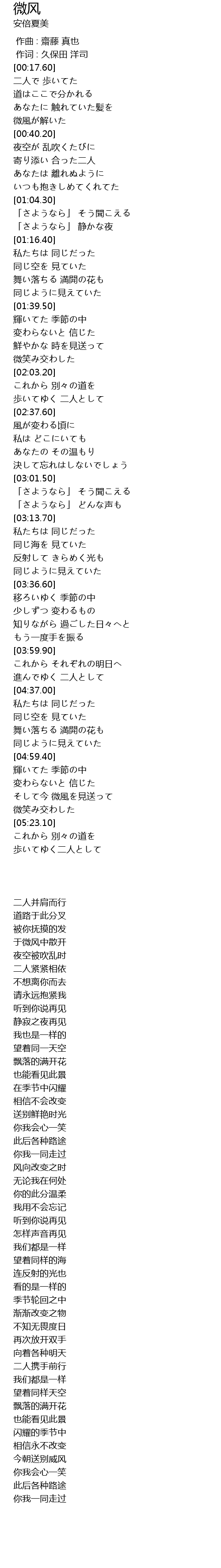| [03:36.66] | 移ろいゆく 季節の中 |