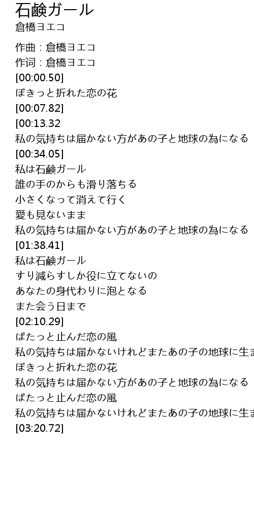 | [03:02.71] | 私の気持ちは届かないけれどまたあの子の地球に生まれます |
