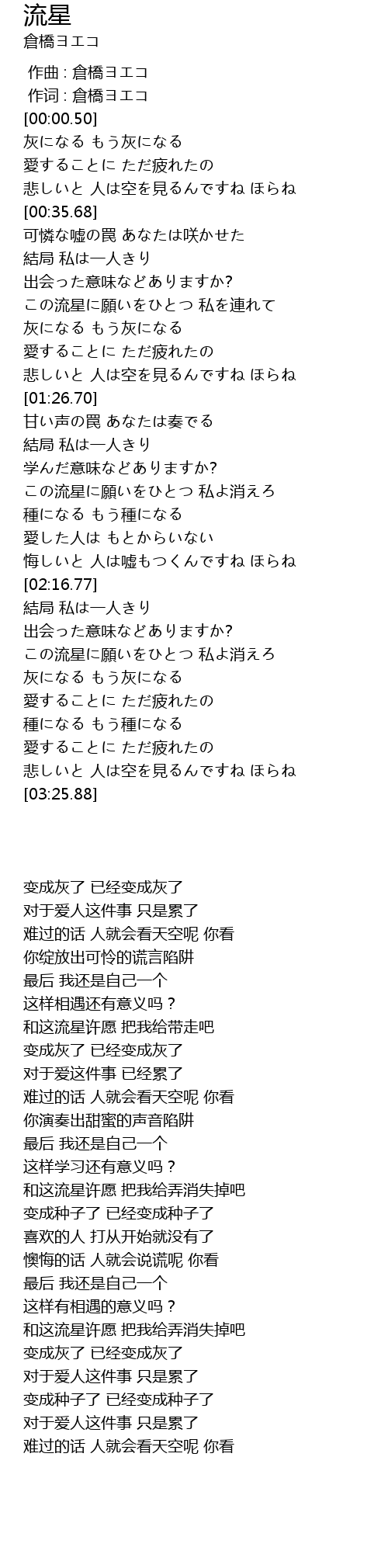 作词 : 倉橋ヨエコ |