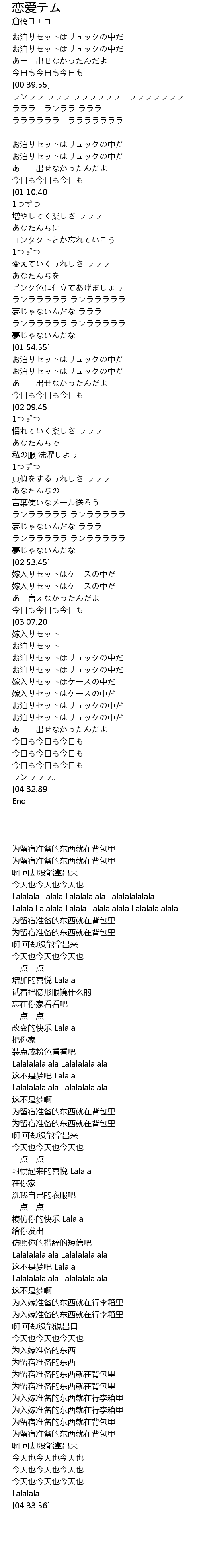 | [00:41.12] | ランララ ラララ ララララララ ラララララララ |