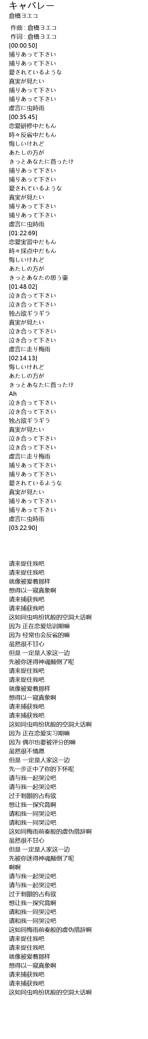 作词 : 倉橋ヨエコ |