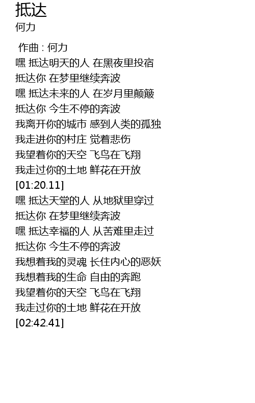 | [02:01.69] | 抵达你 今生不停的奔波 |