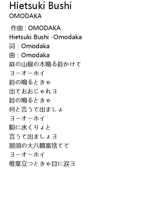 | [00:00.00] | Hietsuki Bushi Omodaka |