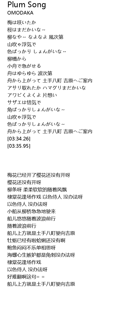 | [03:21.61] | 舟から上がって 土手八町 吉原へご案内 |