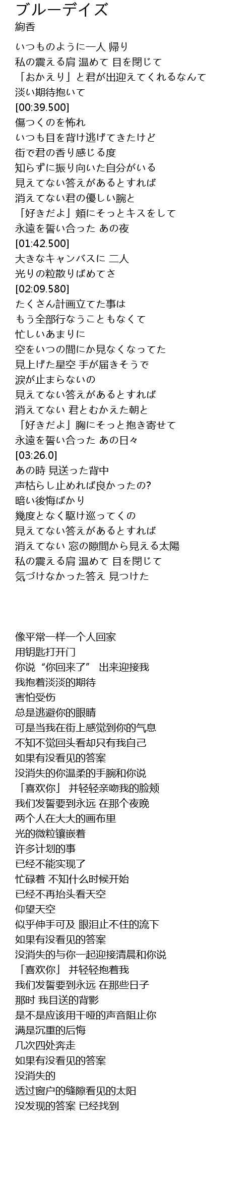 | [03:39.500] | 暗い後悔ばかり |