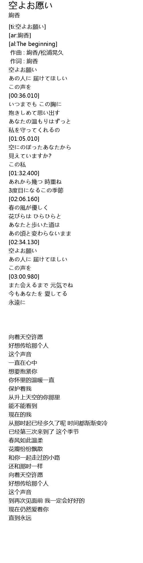 | [00:00.00] | 作曲 : 絢香/松浦晃久 |