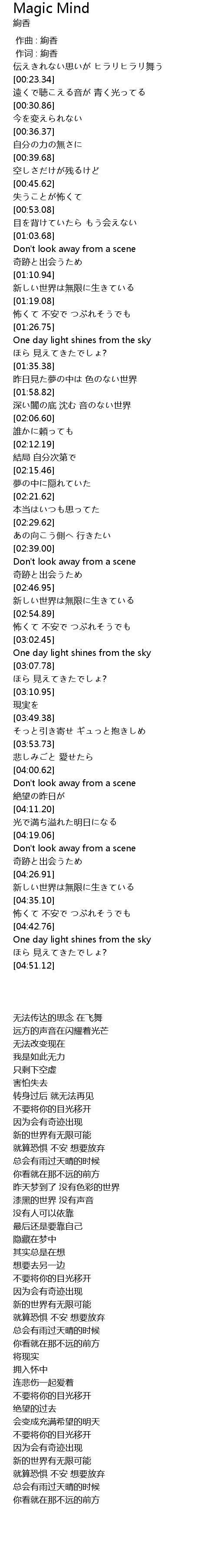 | [01:53.18] | 昨日見た夢の中は 色のない世界 |