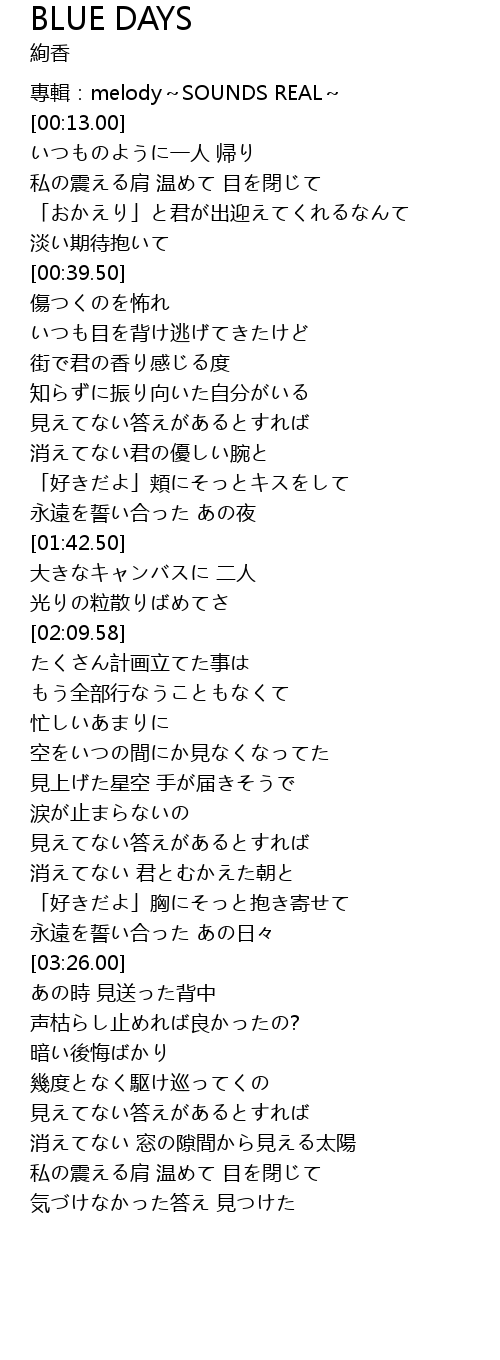 | [03:09.58] | 永遠を誓い合った あの日々 |