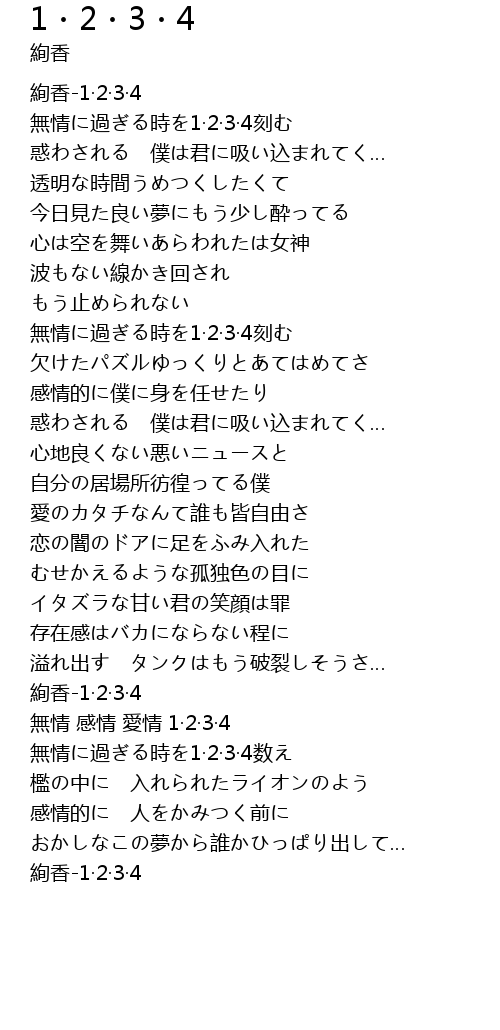 | [01:04.33] | 無情に過ぎる時を1·2·3·4刻む |