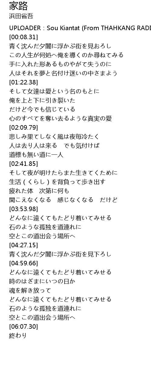 | [03:26.64] | 生活(くらし)を背負って歩き出す |