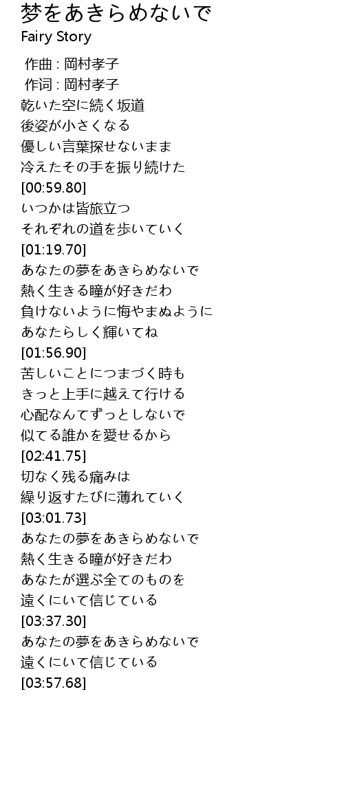 | [03:38.88] | あなたの夢をあきらめないで |