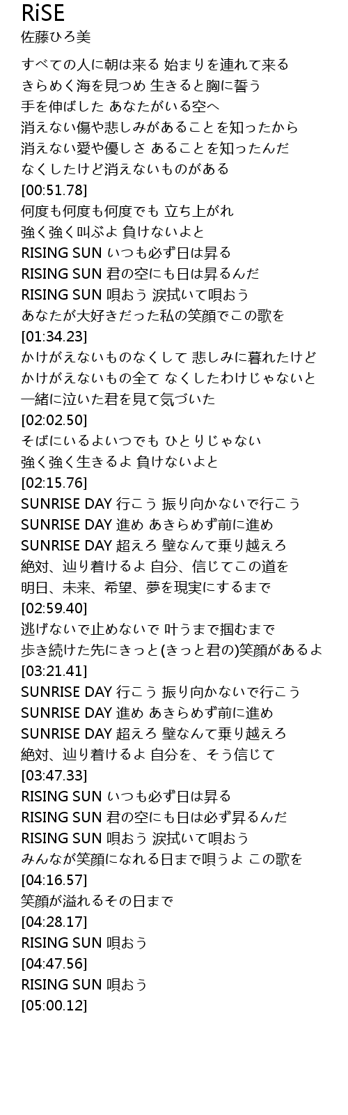 | [02:23.74] | SUNRISE DAY 進め あきらめず前に進め |