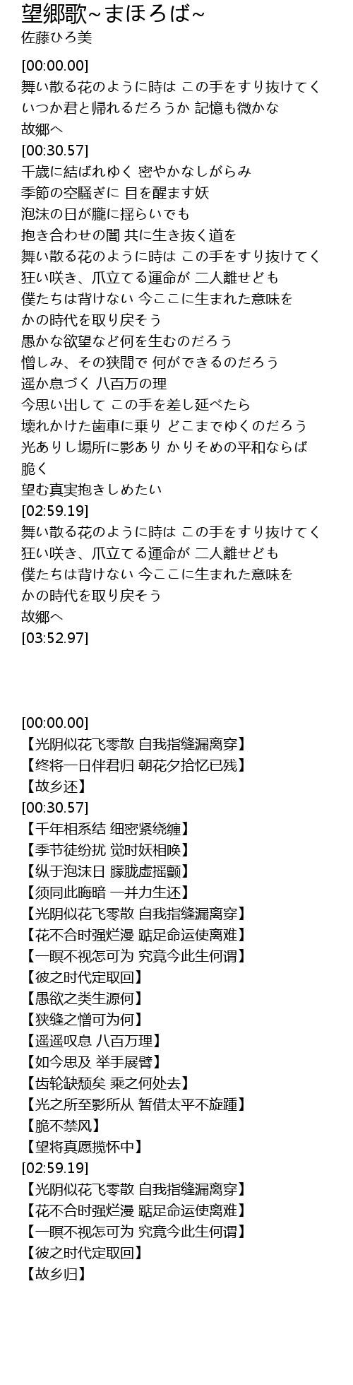 | [03:45.01] | 故郷へ |