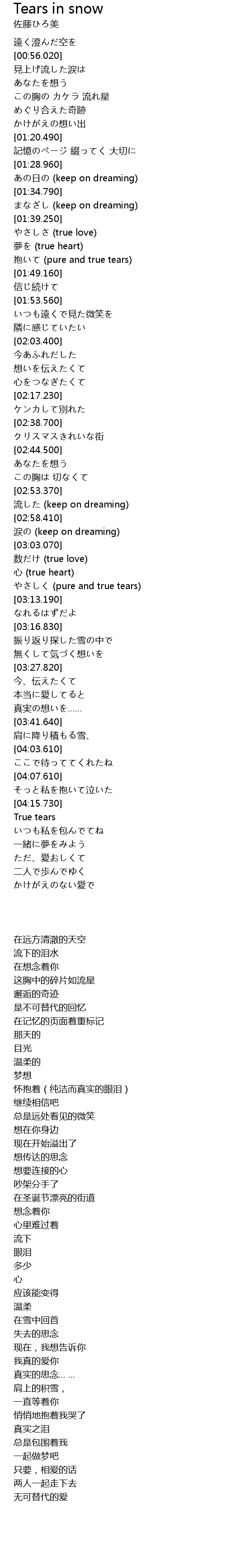 | [01:05.170] | この胸の カケラ 流れ星 |