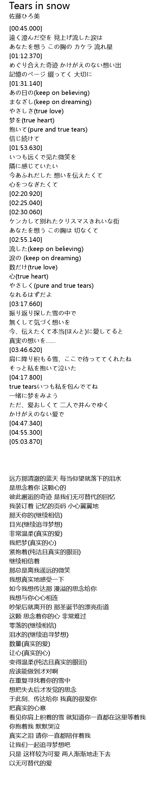 | [04:17.960] | true tearsいつも私を包んでてね |