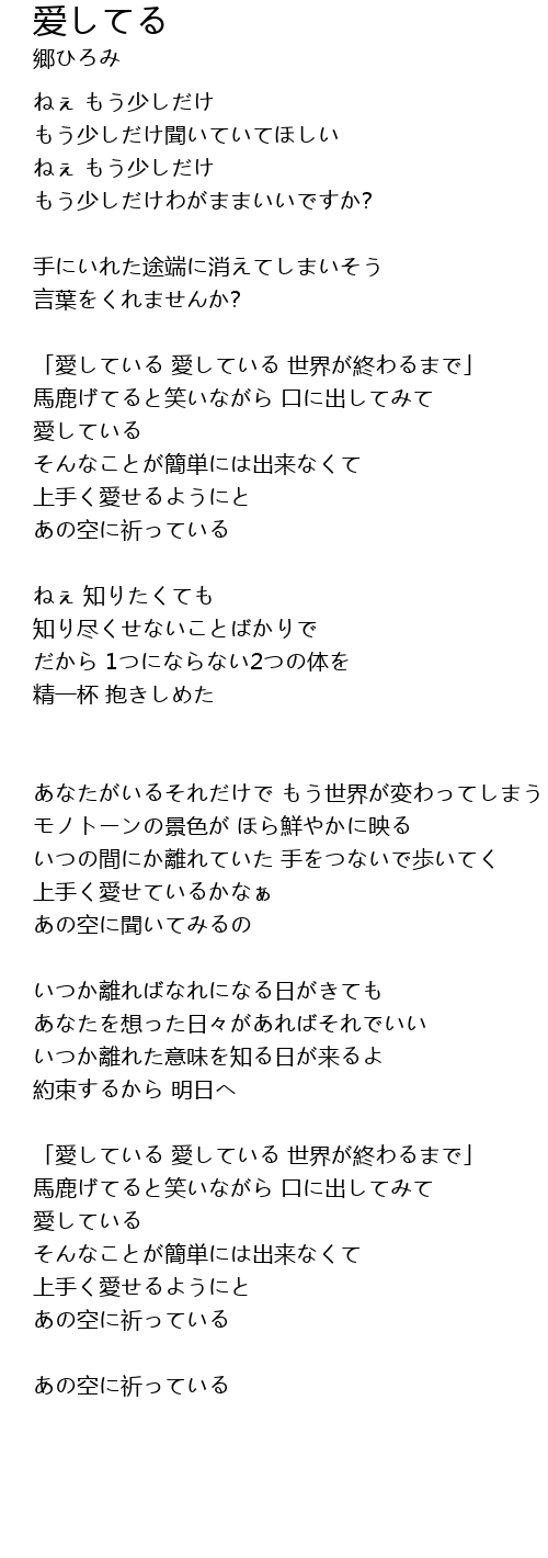 「愛している 愛している 世界が終わるまで」 |