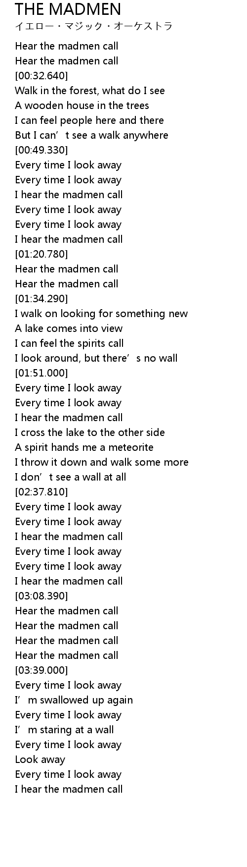 | [00:22.200] | Hear the madmen call |