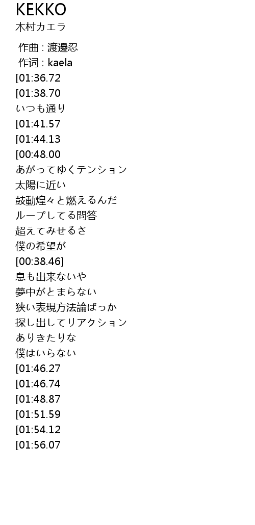 | [00:00.26] | 作词 : kaela |