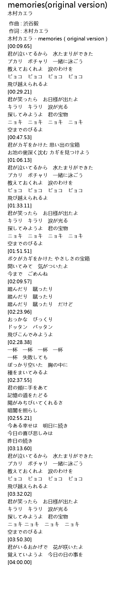 | [00:01.65] | 木村カエラ - memories(original version) |