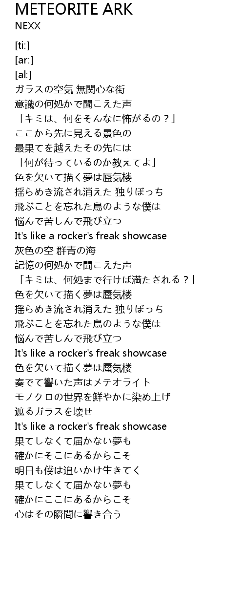| [04:21.92] | 奏でて響いた声はメテオライト |