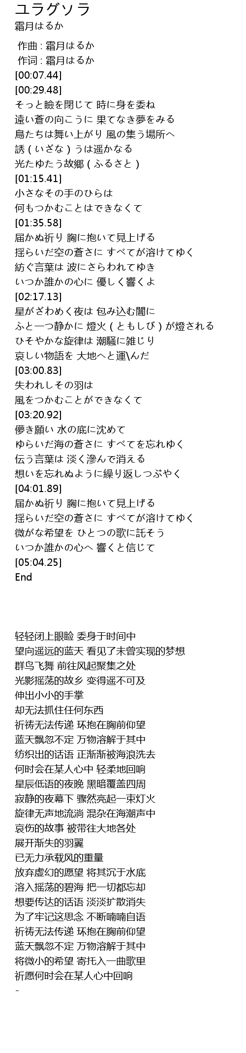 | [00:44.62] | 遠い蒼の向こうに 果てなき夢をみる |