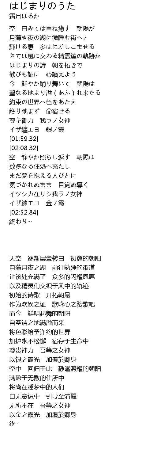| [01:12.64] | はじまりの詩 朝を拓きで |