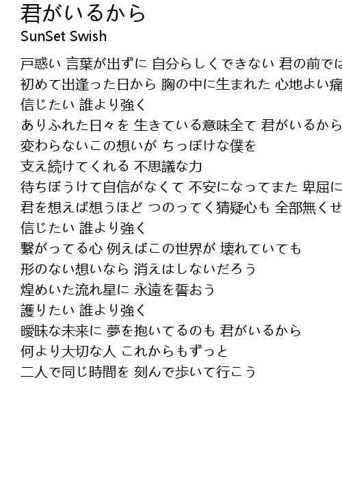 | 曖昧な未来に 夢を抱いてるのも 君がいるから | |